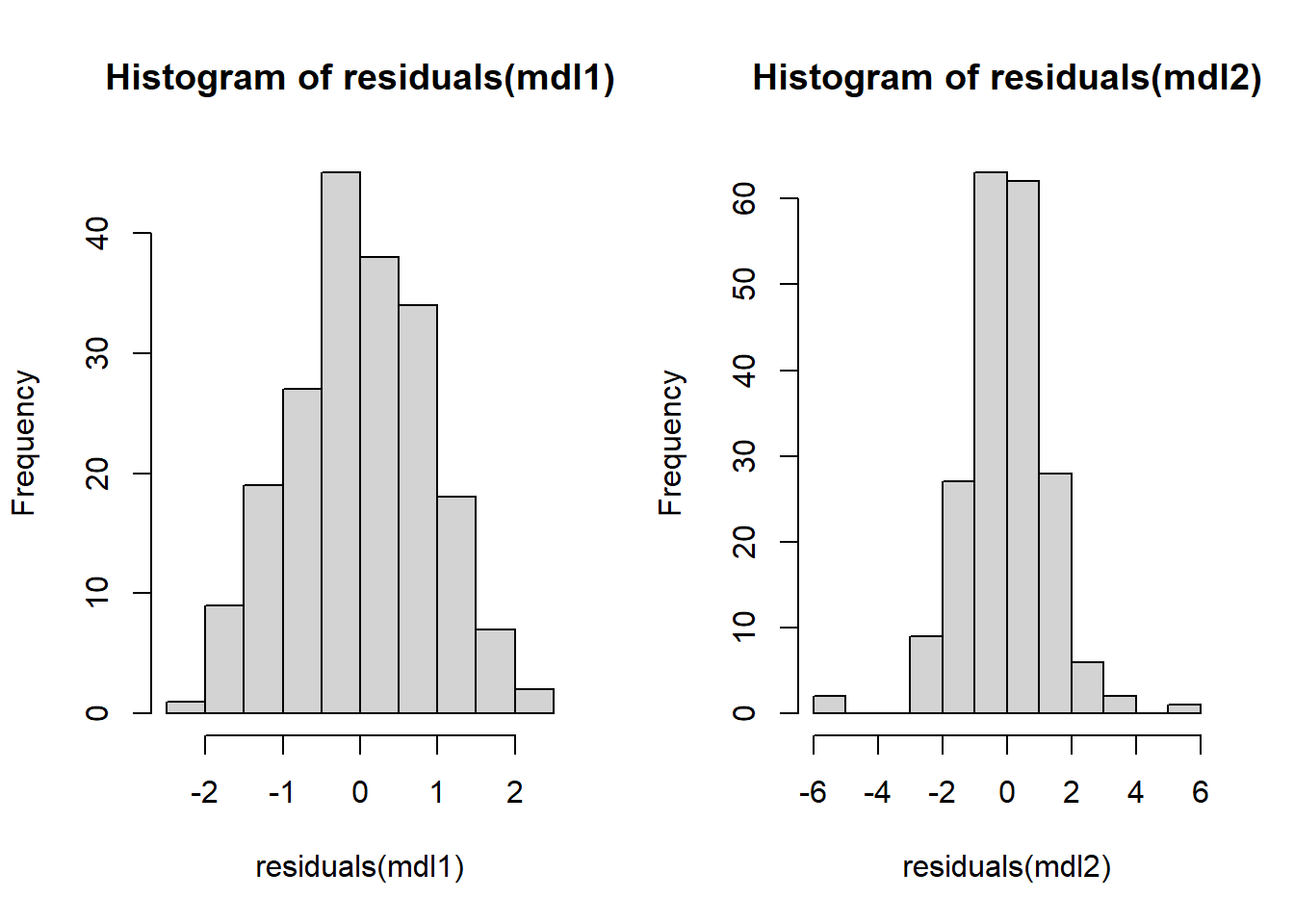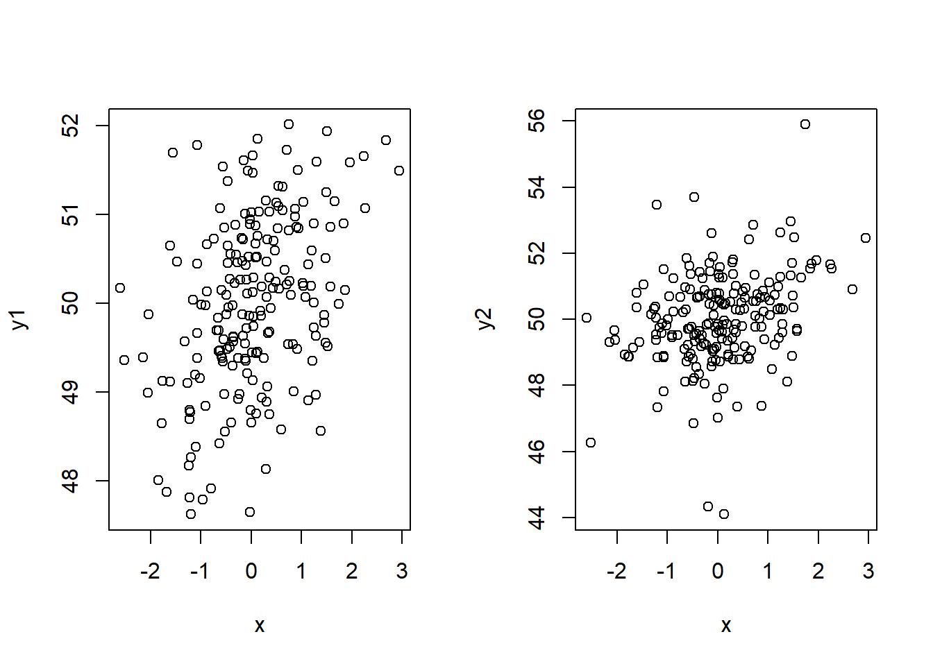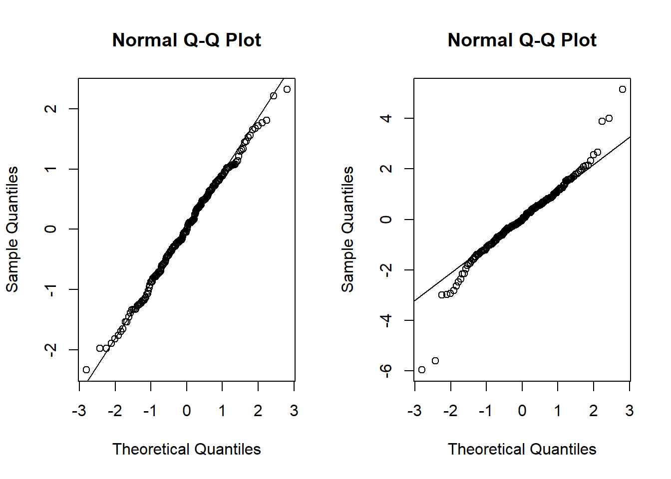 Let’s simulate some data, first with normal residuals and then with t-distribution (df = 4) residuals.